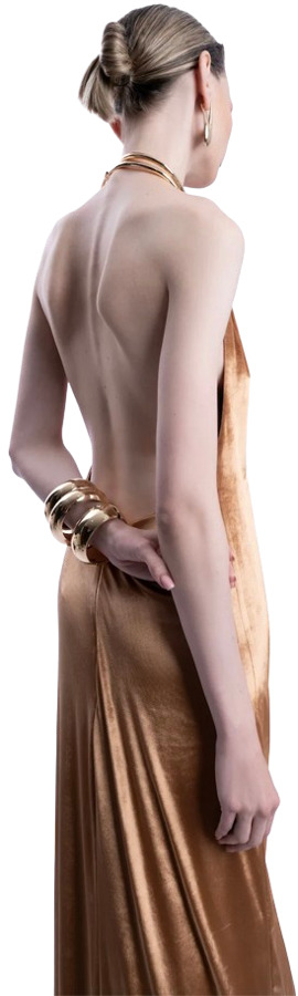 A sleek, statement silhouette designed to captivate. The Lediel Satia dress features a fluid floor-length cut with a striking halter neckline and bold keyhole detail, draping effortlessly over the body. The luminous satin finish adds a touch of glamour—perfect for elegant evenings and standout occasions.