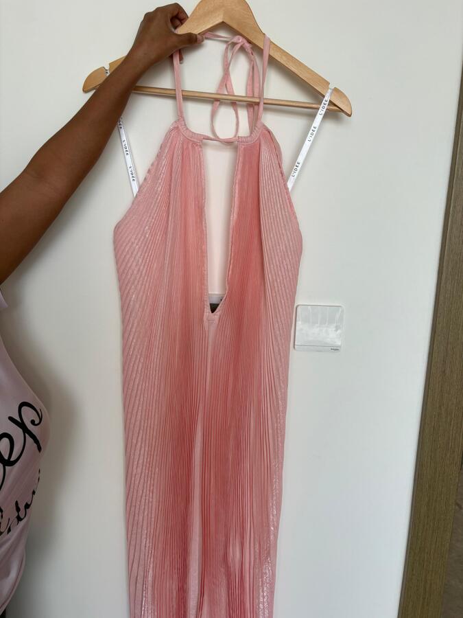 The L'Idee Boheme pleated gown is a dream. Its flowing silhouette and delicate pleating create a romantic and feminine look. Pair it with strappy sandals and minimal jewellery for an effortlessly chic ensemble, perfect for a summer evening or a special occasion.
