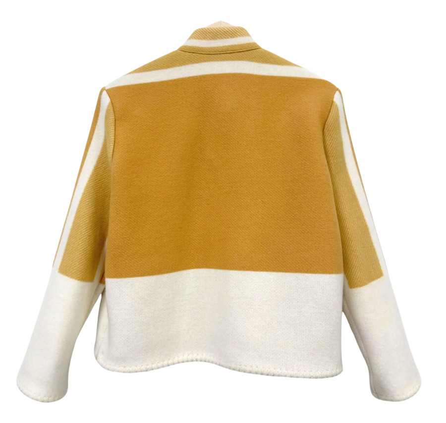 Embrace sustainable luxury with the Butter Jacket by LilyEve! Crafted from an authentic Hermès blanket, this unique piece transforms vintage cashmere wool into a stylish statement. Proudly created by Michel & Lily, it combines elements of curation and couture for a timeless addition to your wardrobe. Indulge in the softness of this 100% cashmere wool blend jacket!