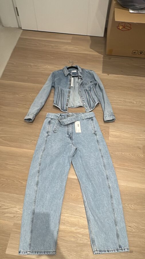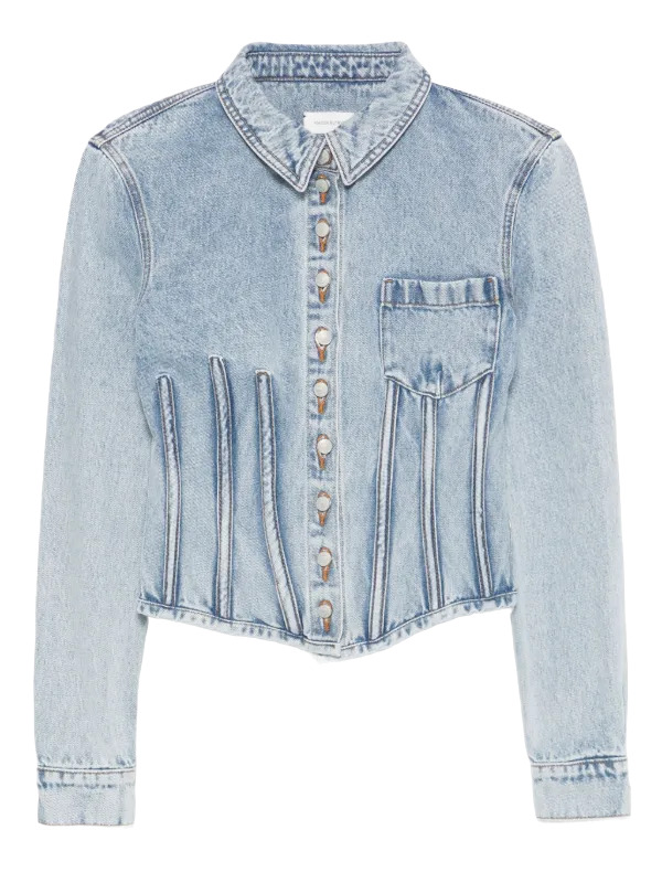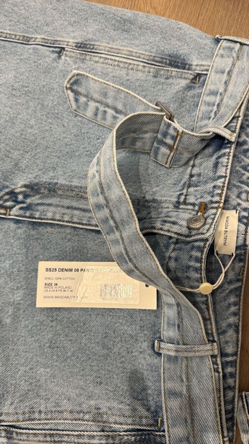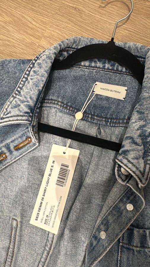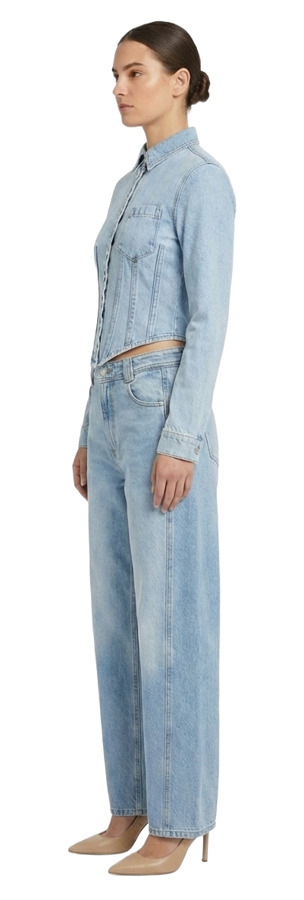 Refresh your wardrobe with the Magda Butrym Cerulean Denim Jacket! This eye-catching jacket boasts a front button closure, buttoned cuffs, and a handy chest patch pocket, all designed with a unique box-pleat style. For a trendy ensemble, match it with blue jeans featuring stylish stitching, five pockets, and a secure zip fly. Perfect for any laid-back outing!