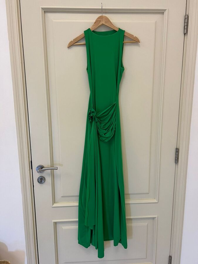Sure to elevate your confidence, Maygel Coronel’s ‘Tirso’ Maxi Dress captures the brand’s vibrant, feminine spirit. Expertly crafted by skilled artisans in Colombia, this design is cut from smooth stretch jersey and softly gathered at the waist to create a draped sash. Finished with the label’s signature floral appliqué, it’s an elegant statement with effortless allure.