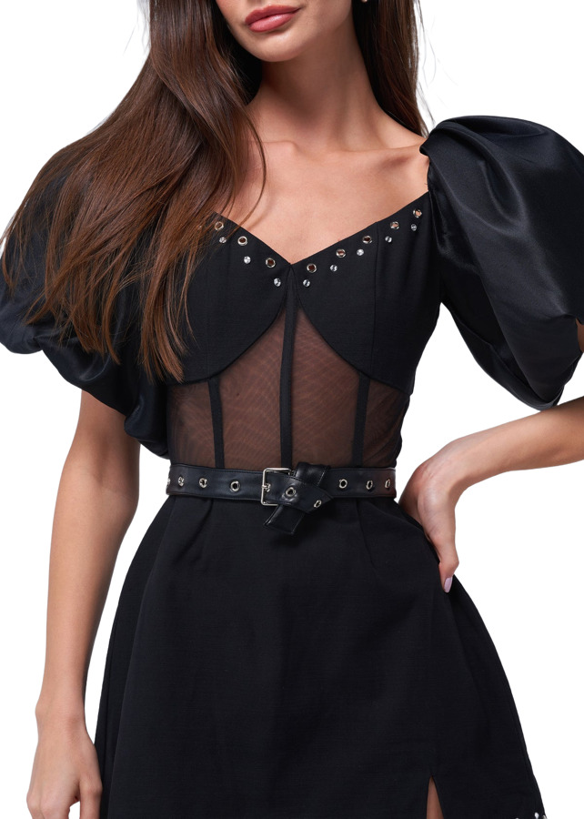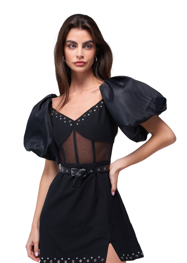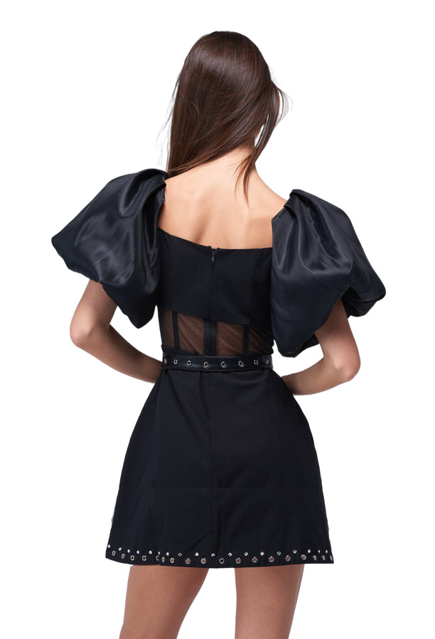 The Peki Dress by Mayka features bold puffy sleeves and a stylish corset that accentuates the silhouette. With a sheer waist detail, this dress adds a touch of allure while maintaining elegance. Perfect for making a statement at any event, it’s a chic choice for those who love standout pieces!