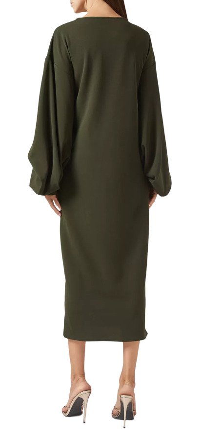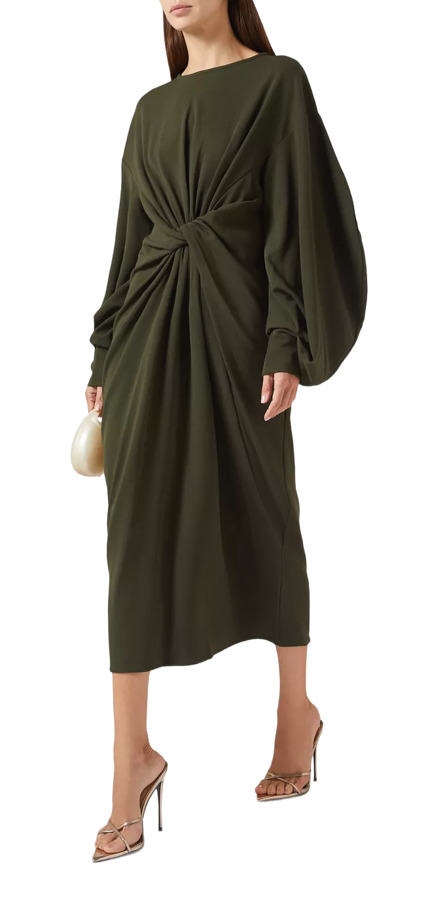 The knot detail at the waist shapes this dress beautifully, pulling the fabric into soft, natural folds. Long sleeves and a straight cut maintain a clean silhouette, while the gathered front adds subtle movement with every step. Perfect for effortlessly chic style, this dress is a must-have for any occasion!