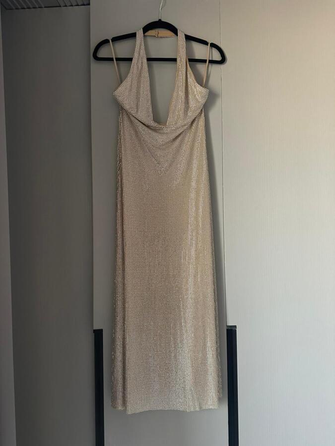 Meet the GENIE Diamante Halter Midi Dress in Nude color—your glittering excuse to steal every spotlight. Its sultry halter neckline and daring plunge sculpt a flawless hourglass silhouette, while the luxe mesh-diamante fabric shimmers with every step. Bold, elegant, and utterly mesmerizing, this midi is made for grand entrances, late-night glam, and anyone who refuses to blend in.