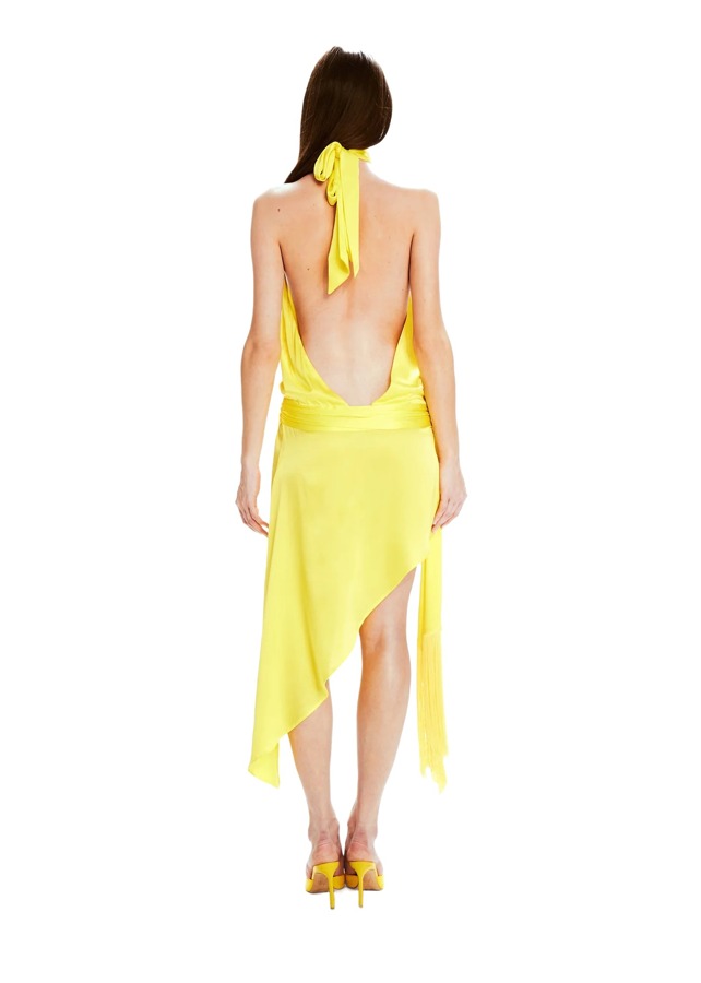 Amos is the perfect dress to accompany you during a sunset. With an iconic backless design, it wraps around you like the wind!