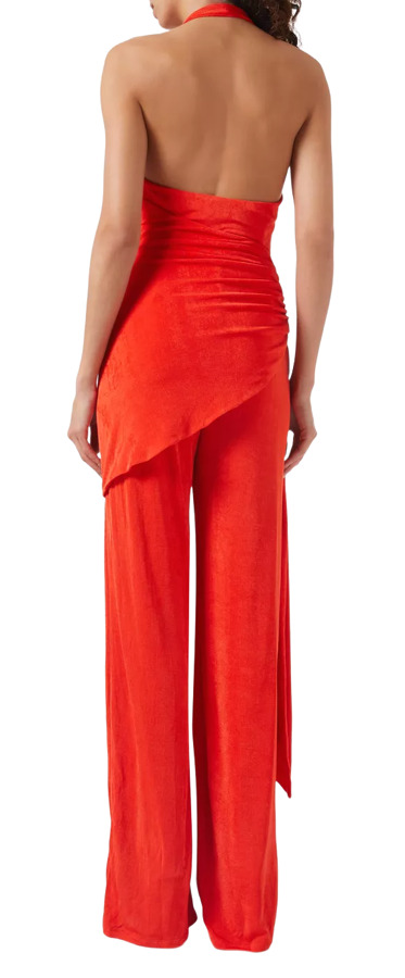 The Halle Jumpsuit by Misha blends sharp tailoring with graceful draping for a look that’s both powerful and feminine. The structured silhouette is softened by a waist-cinching sash, creating a flattering shape. Pair with heels for timeless elegance or throw on a jacket for a modern, edgy twist. Versatile and chic, it’s the perfect piece for any occasion.