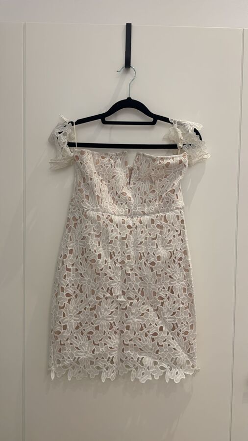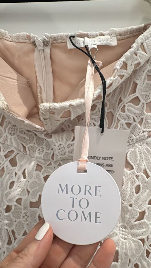 The Shannan Mini Dress from More To Come features elegant guipure lace fabric with a fully lined interior. A hidden back zipper closure ensures a sleek silhouette, while the V-wired front adds a sophisticated touch. With a neckline-to-hem measurement of approximately 61 cm, this dress is perfect for chic outings or special occasions.