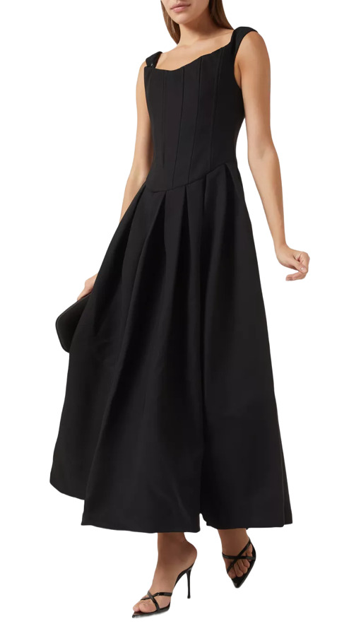 Mossman’s off-shoulder dress is a wardrobe must-have. With a boned bodice that shapes your figure and a pleated A-line skirt for effortless movement, it’s timeless style at its best. This dress blends classic elegance with a modern twist, making it a piece you'll never stop reaching for. Perfect for every occasion!