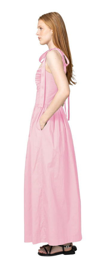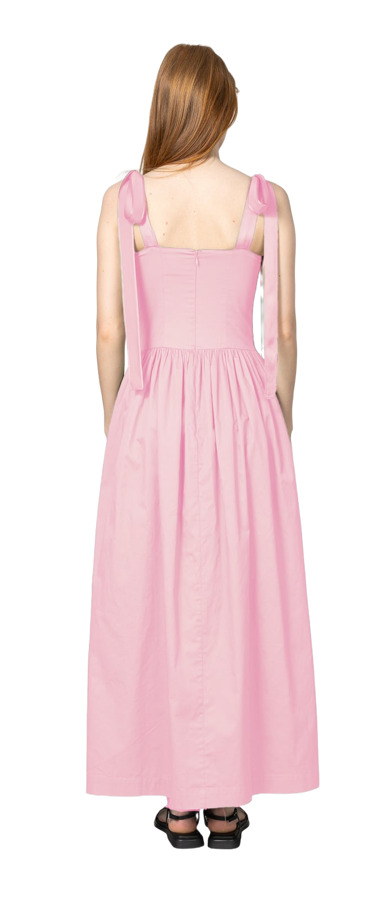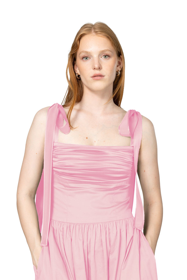 Embrace the ethereal allure of the Elsa Maxi Dress, where elegance meets whimsy. Flowing shoulder ties cascade gracefully, paired with adjustable silk straps featuring gleaming silver hardware. The structured bodice gently hugs your figure, while a ruched bust adds enticing allure. With delicate gathers in the skirt inviting movement and grace, this dress creates an enchanting vision of effortless beauty.
