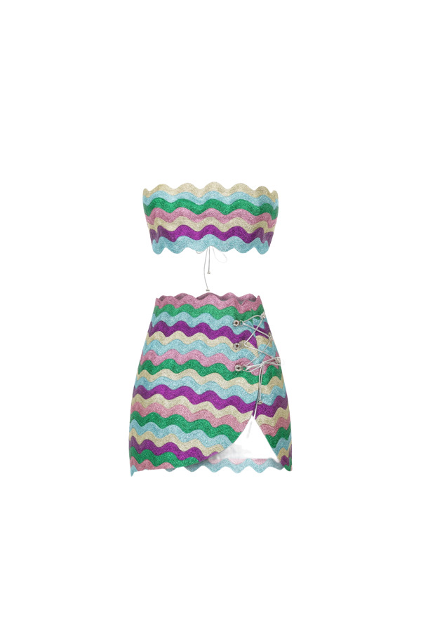 Bright and playful, the Naia Shea Crop Top in Rainbow features a vibrant multicolor design with a flattering, fitted silhouette, perfect for adding a bold, fun touch to any outfit.