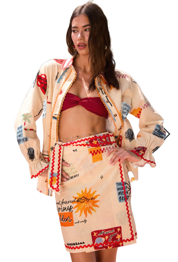 Elevate your style with the Never Fully Dressed Relaxed Cotton Shirt Co-ord in cream print! This chic piece features an all-over print, a stylish spread collar, and a button placket for a polished look. The long sleeves with elasticated, flared cuffs and contrast trims add a playful touch. With a relaxed fit, it’s perfect for effortless, everyday elegance!