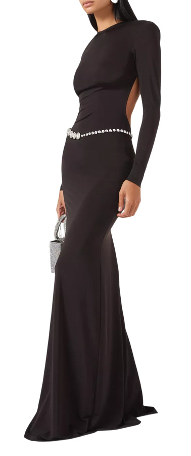 Turn heads at your next soiree in Ilkyaz Ozel's Emmanuelle Dress! This stunning piece features padded shoulders and a dazzling crystal belt that beautifully accentuates your curve-hugging silhouette. The eye-catching open back adds a dramatic flair, ensuring all eyes are on you. Embrace your confidence and shine in this must-have dress for any special occasion!