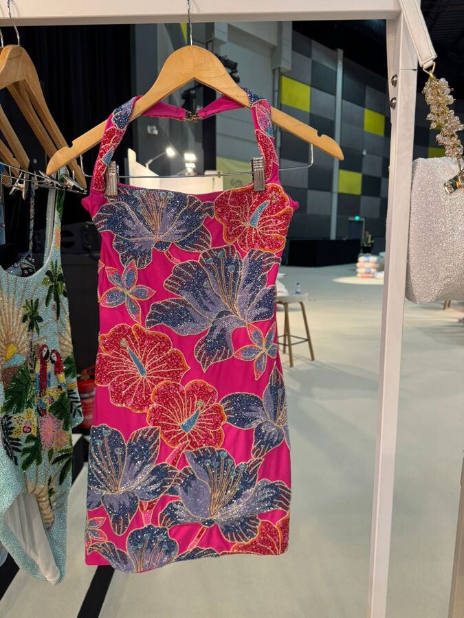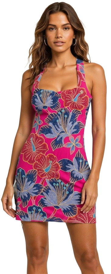 The Beaded Floral Halter Mini Dress by Oceanus is a dazzling, feminine piece designed to turn heads. Hand-beaded floral motifs shimmer across the dress, creating a striking contrast against its flattering halter neckline and fitted mini silhouette. Radiating glamour and summer elegance, it’s the perfect choice for evening events, destination parties, or special celebrations where you want to stand out with effortless sophistication. . Size S = UK8