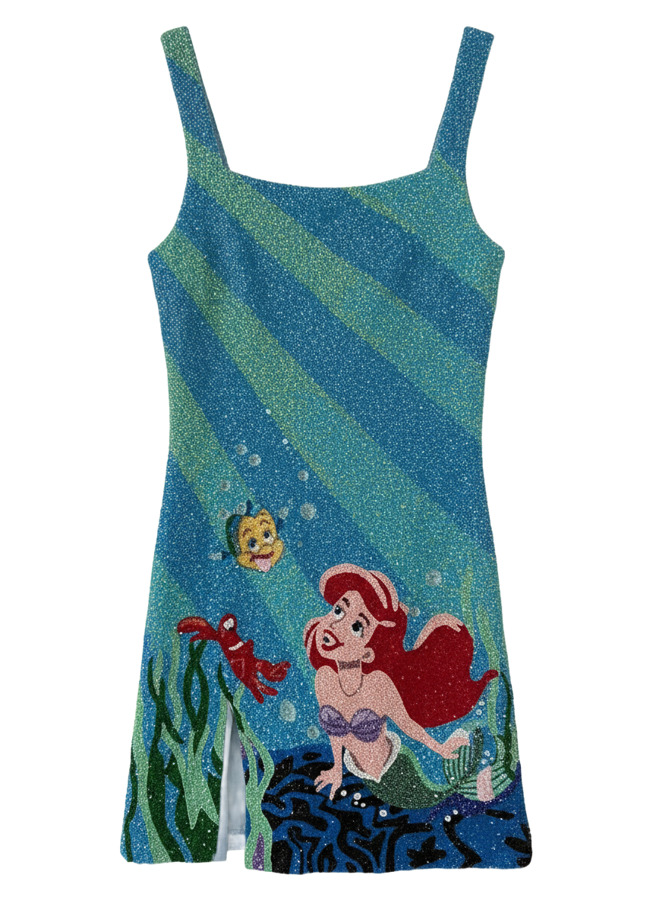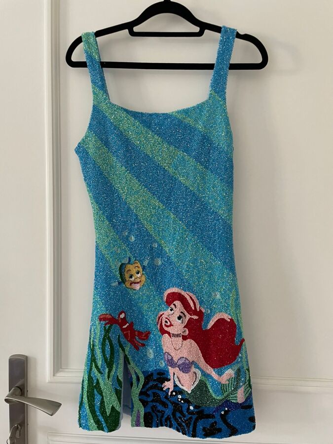 Dive into the magic of the sea with this enchanting dress, featuring a shimmering design that brings to life an iconic underwater scene. Adorned with sparkling embellishments, it showcases lively colors and beloved characters, perfect for any whimsical occasion. With its playful cut and comfortable fit, this dress is bound to be the highlight of summer adventures. Pair it with fun accessories for a captivating look!