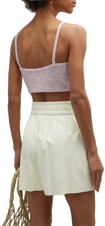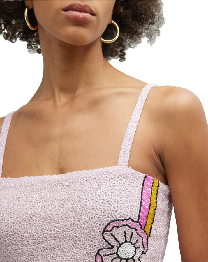 Eco-friendly power mesh. Hand embroidered. Pull-on top