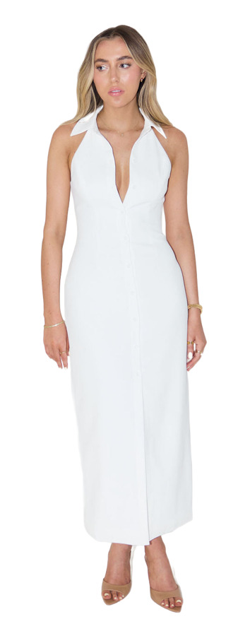 Introducing our maxi dress, designed for the modern muse! Featuring a sharp collar, button-down front, and sophisticated slit, this stunning piece is crafted from lightweight, luxurious fabric. It's the ideal companion for summer dinners and bold holiday statements, offering both style and comfort for any occasion. Embrace effortless elegance this season!