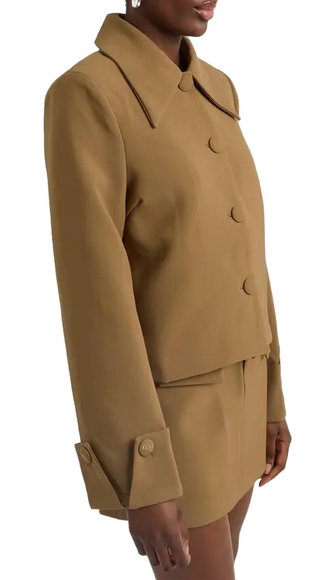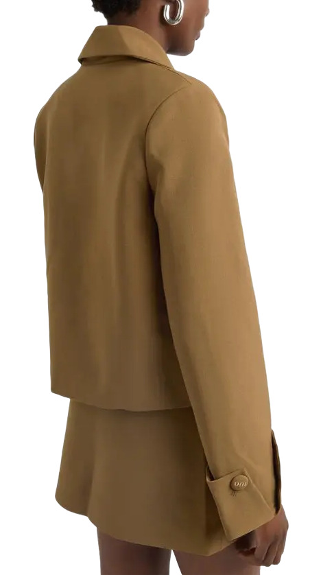 Elevate your style with our olive iteration. With signature tailoring, oversized lapels, and an embroidered OM stamp on the cuff, this jacket epitomizes sophistication. Consider it your ultimate fall uniform, perfect for embodying timeless elegance season after season.