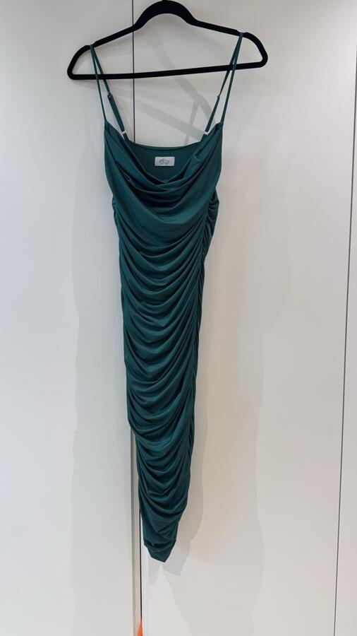 This asymmetric midi dress is a must-have, featuring a flattering cowl neckline and sculpting ruched fabric. With adjustable straps for a customizable fit, it offers a perfect blend of style and comfort. Designed to fit true to size, this dress will make you feel confident and chic for any occasion. What more could you wish for?