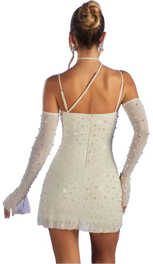 An asymmetric mini masterpiece, adorned with sparkling embellishments and a sculpting corset fit. Chic, statement-making, and made for your most glamorous nights