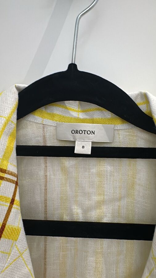 Embrace summer charm with the Oroton Picnic Camp Shirt. This relaxed-fit linen shirt features a delightful garden and orchard print, ideal for breezy lunches and picnics. Natural shell buttons and an open neck enhance its classic appeal, making it a perfect warm-weather addition to your wardrobe. Enjoy style and comfort in every setting.