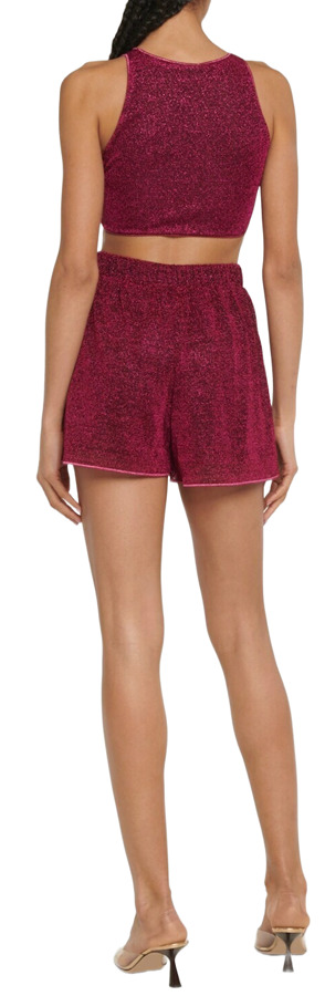 The Lumiere Crop Top and Boxing Shorts in Stretch Lurex by Oseree make a dazzling set that blends comfort with high-impact glamour. Crafted from the brand’s signature glittering lurex, the body-hugging crop top and relaxed-fit shorts shimmer with every move, creating a playful yet polished look. Perfect for poolside lounging, beachside parties, or summer nights out, this set delivers effortless sparkle with a modern, carefree edge.