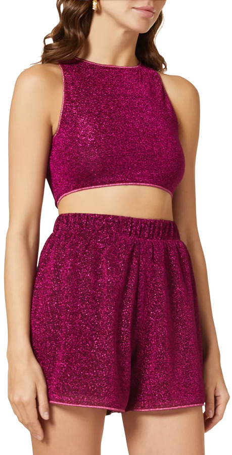 The Lumiere Crop Top in Stretch Lurex by Oseree is a sparkling staple designed to shine. Crafted from the brand’s signature glittering lurex, it offers a sleek, body-hugging fit with a playful cropped cut. Versatile and eye-catching, it pairs effortlessly with the matching shorts or skirts, making it the perfect piece for poolside parties, beach getaways, or nights out where a little shimmer goes a long way.