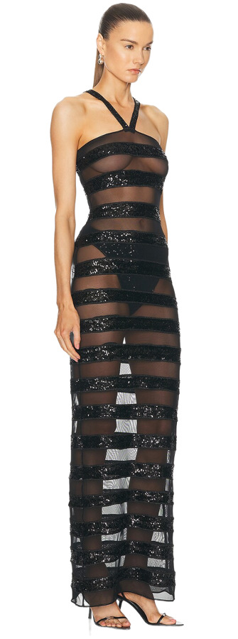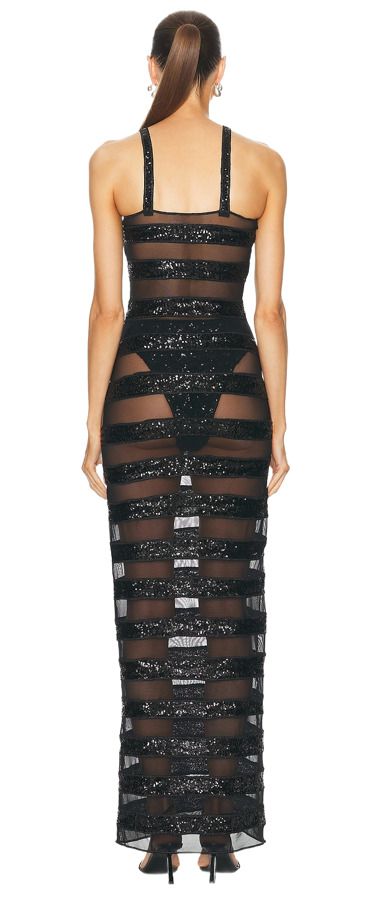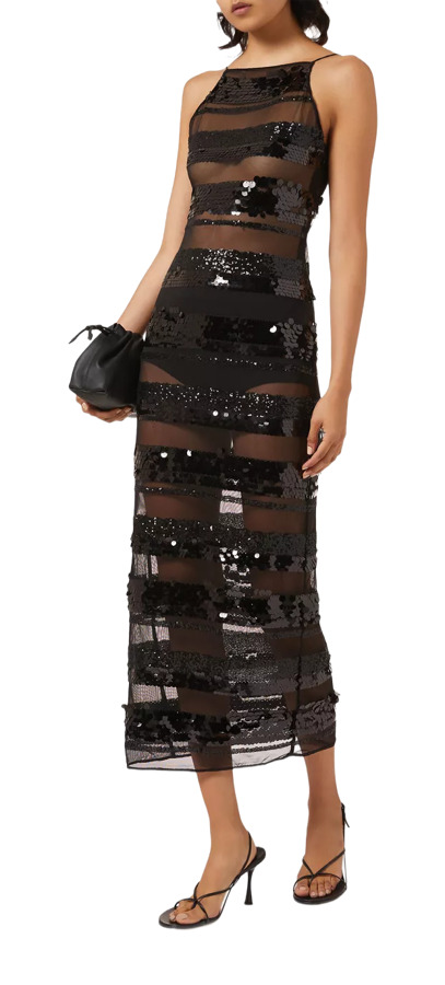 The Paillettes Stripes Dress blends eye-catching sequin details with a classic striped pattern for a unique and stylish look. The shimmering paillettes add elegance, while the stripes elongate the silhouette, making it a perfect choice for any special event or night out. Shine in sophistication!