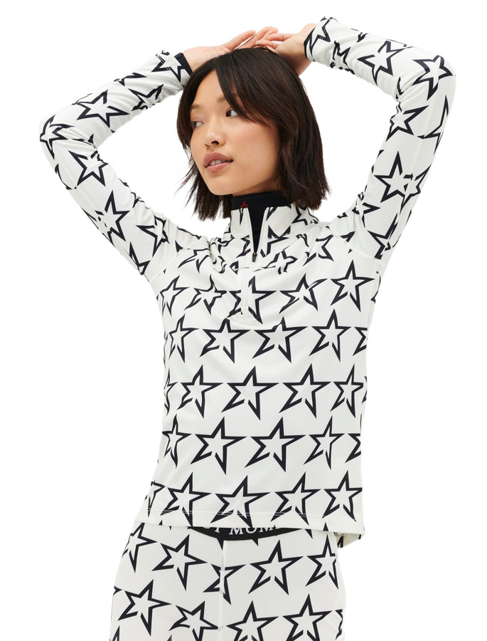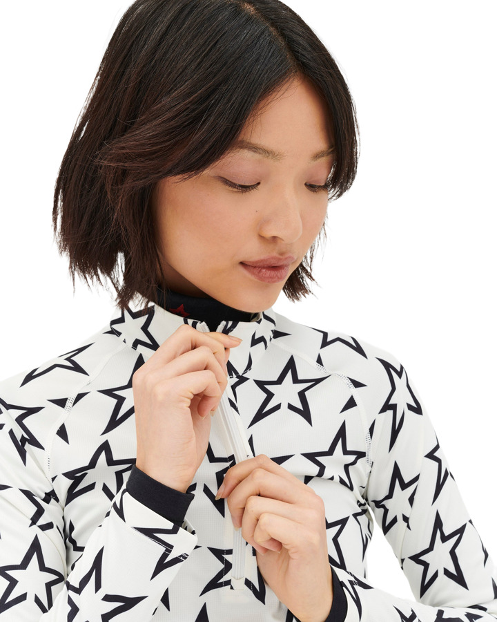 Hit the slopes in style with the Perfect Moment Thermal Half Zip for women. This fitted base layer features moisture-wicking fabric, long sleeves, and a chic half-zip mock neck. Finished with the iconic logo star print, it’s the ultimate ski essential—perfect worn solo or paired with the matching thermal pants.