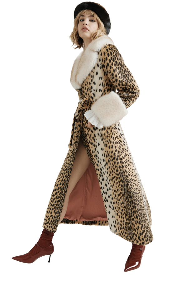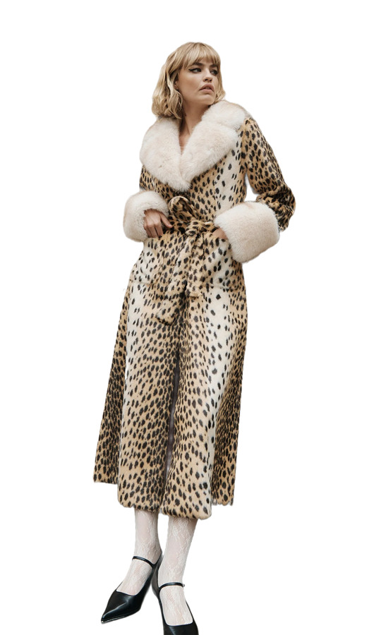 Priscilla roams the season with striking elegance, her faux pony fur cinched at the waist by a dramatic belt, complemented by luxurious ivory cuffs and collar. A hint of cosmetic pink satin inside adds a playful touch, reminiscent of vintage opulence. Limited in availability, this exquisite coat is made for women who command attention, transforming every entrance into a scene and every street into a runway.
