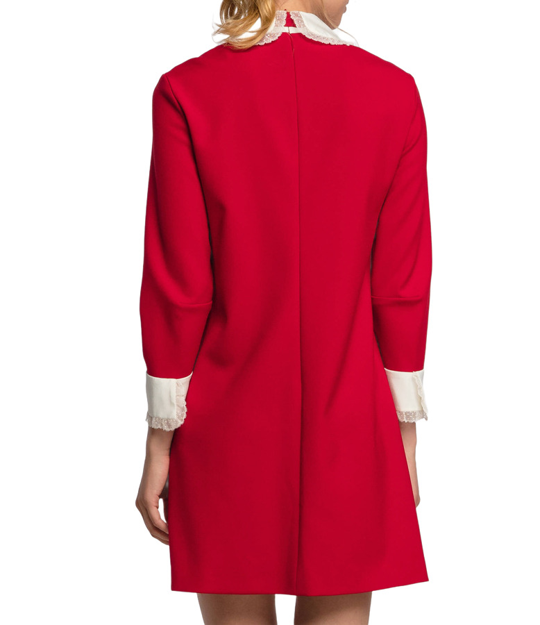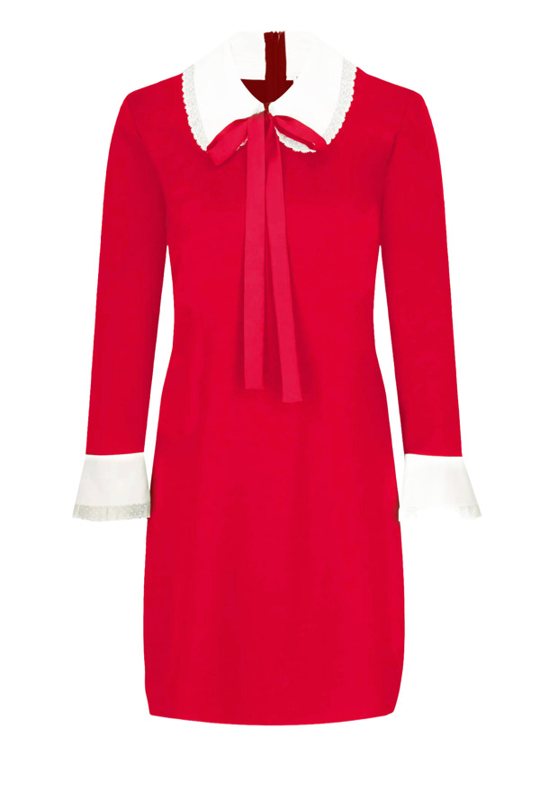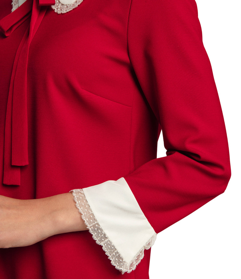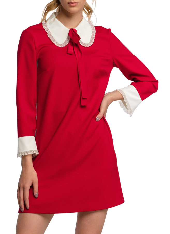 Step into the spotlight in this charming red mini dress! A delightful blend of classic and festive, it features an A-line skirt that flatters every figure. With romantic lace details at the cuffs and collar, this vibrant true red piece adds a splash of sophistication to any occasion. Perfect for parties or simply to steal the show!