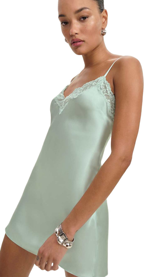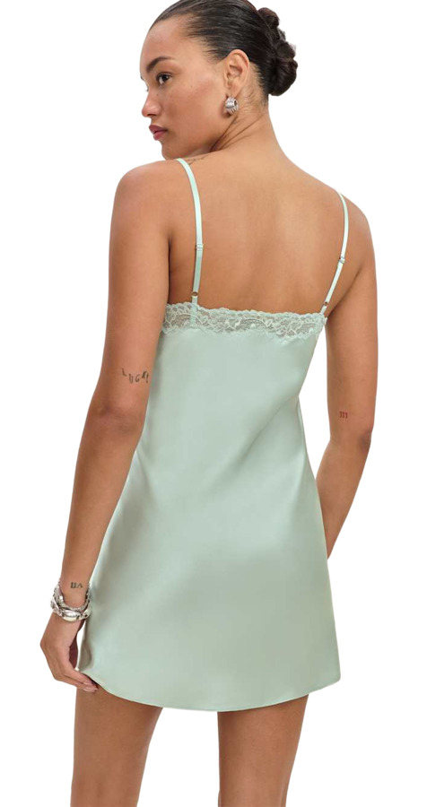 Go on, be a tease. The Marina Silk Dress from Reformation is your flirty best friend—sleek, sleeveless, and mini with a sultry V-neckline trimmed in delicate lace. It’s soft, silky, and impossibly charming… basically designed for making hearts skip and heads turn.