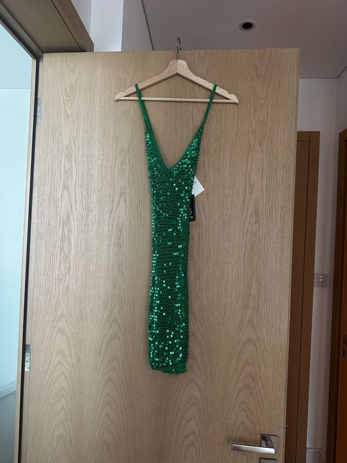 Make a statement in the Astrid Dress! This classic silhouette features daring lace tie detailing along the back, adding a unique twist. Covered in all-over sequins, this mini dress is perfect for dancing the night away. Shown here in vibrant Kelly Green, it’s handmade from a luxurious blend of 95% viscose and 5% Lycra for a comfortable fit.