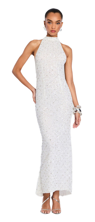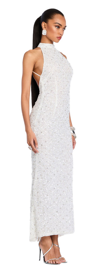 The Olivia Sequin Dress flaunts a form-fitting silhouette with a stunning halter neck design and a sultry open back. A chic button closure at the neck enhances its seductive charm, while an invisible zipper runs the length of the body for a seamless finish. Get ready to captivate and dazzle wherever you go!