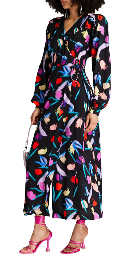 Embrace playful elegance with the Marisol Printed Jacquard Wrap Dress by ROTATE! Crafted from soft viscose, this signature piece features a stunning midi silhouette complemented by dramatic puffy sleeves that make a bold statement. The open back, tied at the waist, adds a flirty touch, while the lively A-shape skirt flows beautifully with every step. Perfect for any occasion, this dress effortlessly combines fun and sophistication!