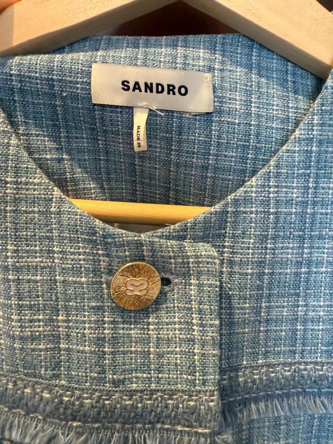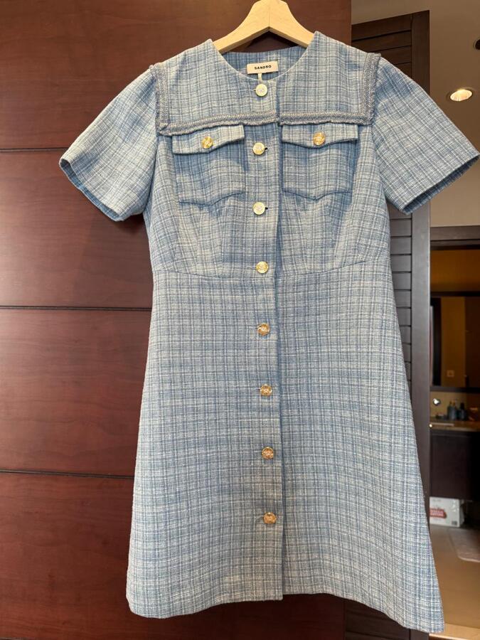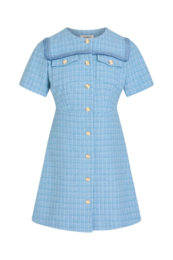 Step into chic sophistication with the Sandro Cotton-Blend Tweed Mini Dress. Crafted from mid-weight cotton-blend tweed, this stylish dress features frayed trims and flattering breast pockets. With button fastenings through the front and fully lined for comfort, it’s perfect for making a statement at any occasion. A versatile piece to elevate your wardrobe!