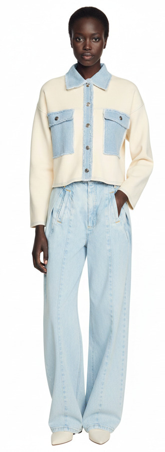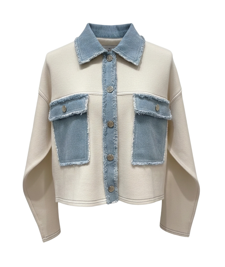 Elevate your casual style with this Contrast Denim and Sweatshirt Jacket. Featuring a blend of soft fabric and durable denim accents, its cropped silhouette and button-front closure offer versatility. With two stylish pockets, this jacket combines function and fashion effortlessly, making it the perfect addition for a modern twist to any outfit.