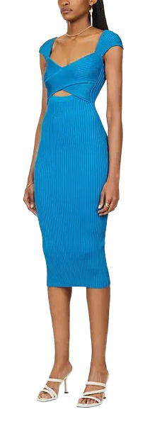 Amp up your wardrobe with the Self-Portrait Cross-Over Stretch-Woven Midi Dress. This sassy piece flaunts an elegant design with a contemporary twist, featuring a sweetheart neckline and bold cut-out detail. Made from stretch ribbed viscose, it hugs your curves just right, while short sleeves and a straight hem keep it effortlessly chic. Perfect for turning heads at any event!