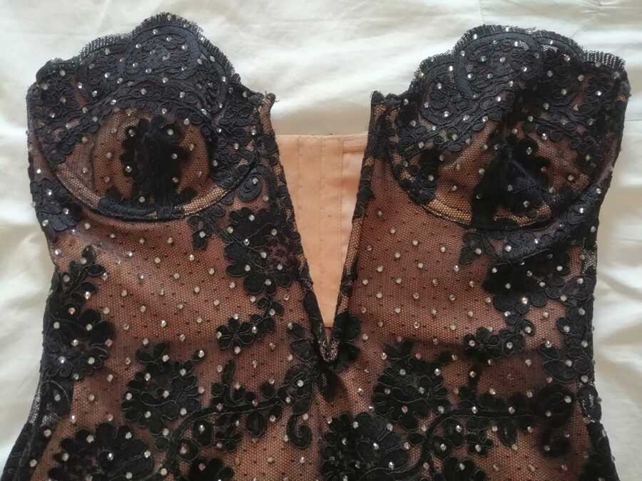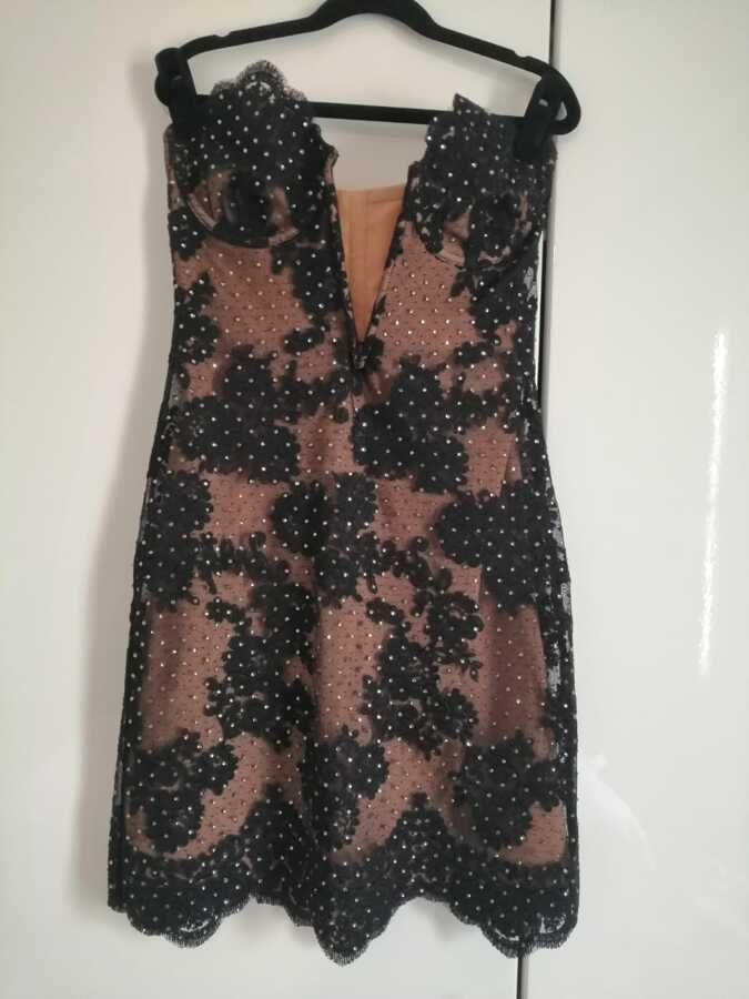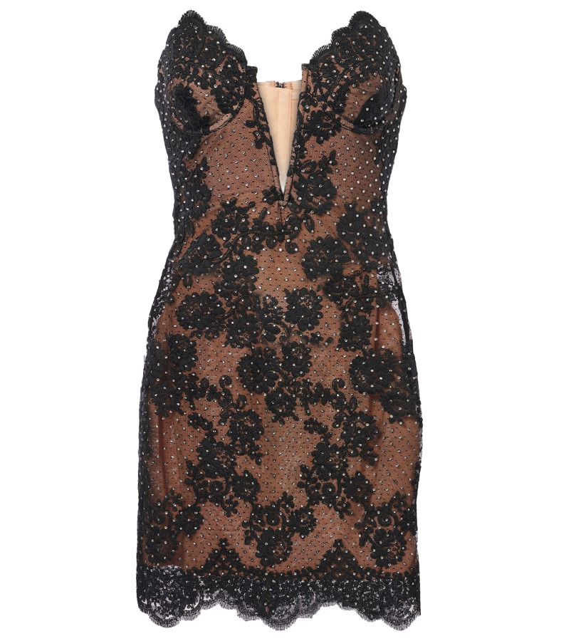 The Self-Portrait embellished lace bustier dress features a fitted style with minimal stretch, ensuring a sleek silhouette. It boasts a captivating cut-out detail at the front and a zip closure at the back. Fully lined for comfort and elegance, this dress is perfect for making a statement at any special occasion.