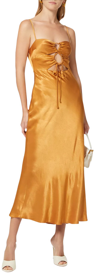 The Alma Lace-up Midi Dress in Satin by Shona Joy is the definition of sleek sophistication. Crafted in a fluid satin that catches the light with every step, it features a delicate lace-up detail that adds both edge and femininity. The midi length makes it versatile for elegant evenings, cocktail parties, or even as a chic wedding guest look. It’s a timeless yet modern piece that feels as effortless as it is striking.
