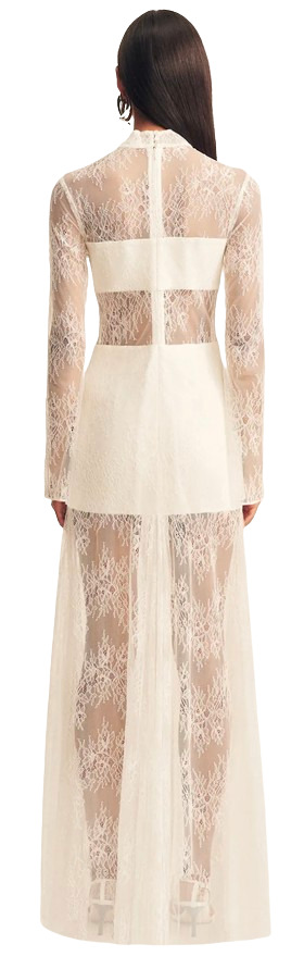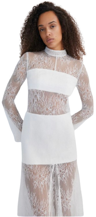 Timeless and elegant. Intricate lace shapes a flattering fitted bodice, flowing into a relaxed skirt with graceful movement. Soft and airy, it brings a romantic, feminine feel. Perfect for bridal moments and special occasions.