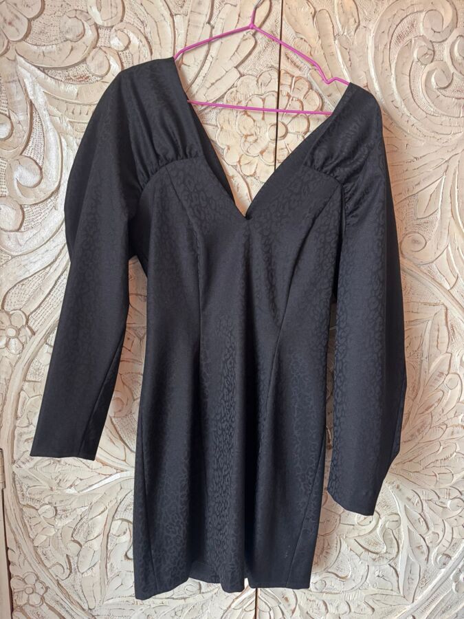 Turn heads and break hearts in this stunning black mini dress! With a daring V-neck and voluminous sleeves, it accentuates your curves while adding a bold flair. Perfect for a night out, this showstopper promises to make you the center of attention wherever you go!