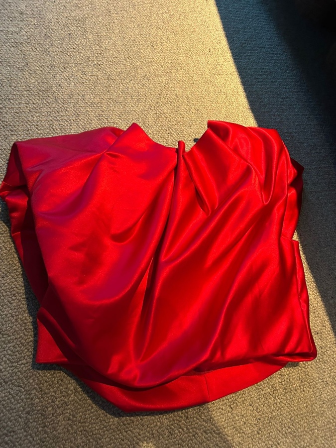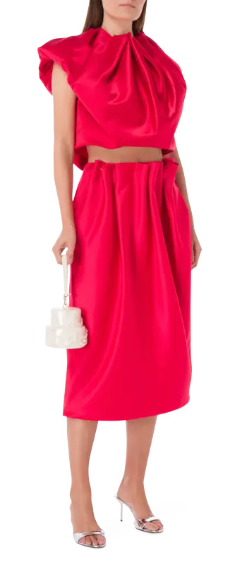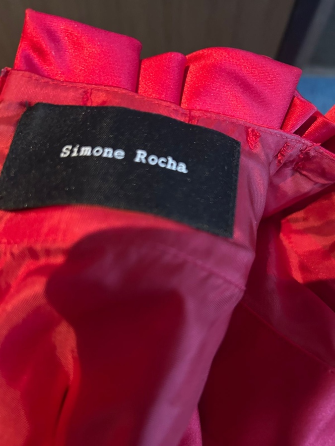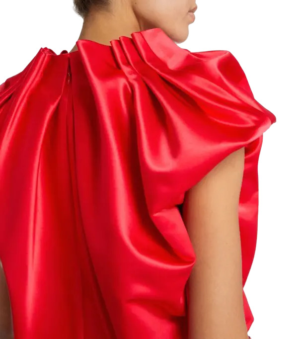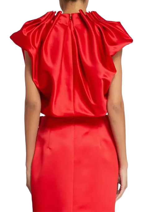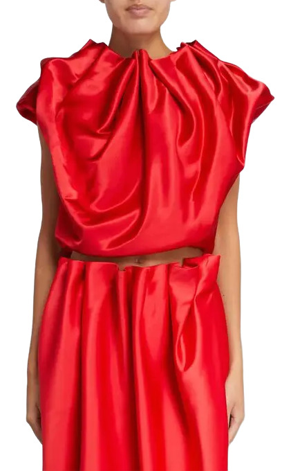 Turn heads in the Red Satin Pleated Top by Simone Rocha! This stunning piece features a luxurious red satin finish with elegant pleat detailing and a flattering draped design. With a round neck, cap sleeves, and a concealed rear zip fastening, it offers a chic and sophisticated silhouette that’s perfect for any occasion!