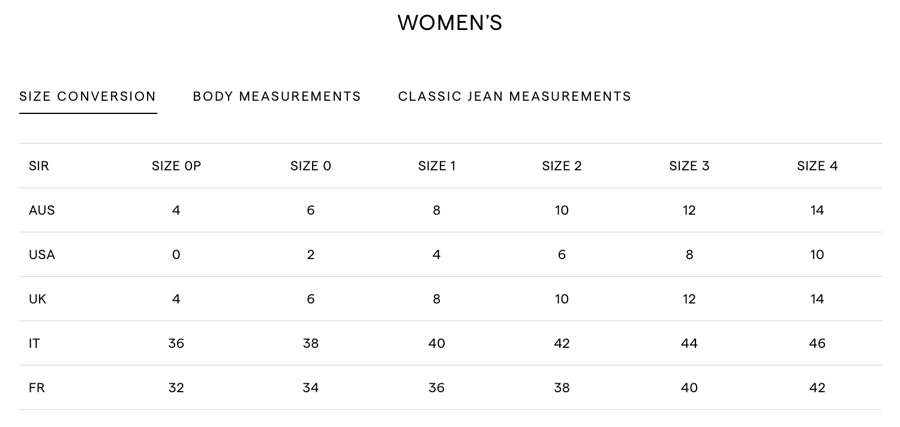 Tag is Size 1 = FR 36 = UK 8