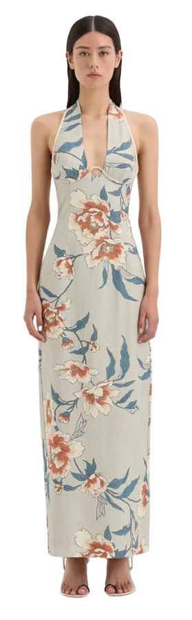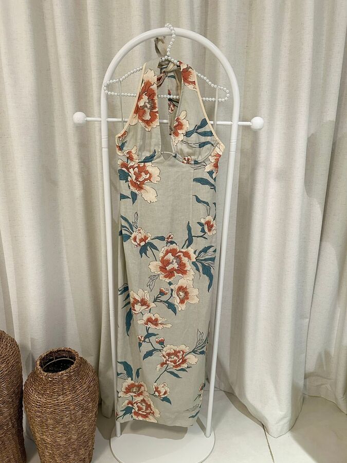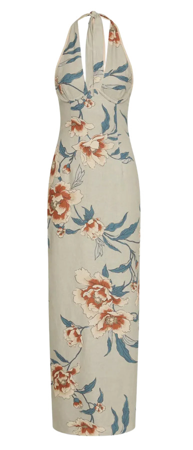 Bloom like you mean it. The Roisin Halter Midi Dress delivers a flirty, feminine silhouette in signature midweight linen splashed with hand-painted florals. Sculpted panel lines and a structured, underwired bodice keep everything snatched, while the side split adds effortless movement. It’s romantic, polished, and unapologetically pretty—your floral era starts now.