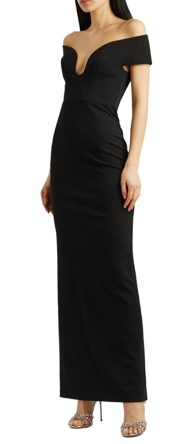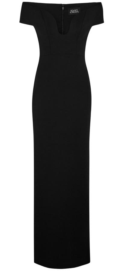 Step into elegance with the Solace London Stretch-Crepe Dress. Featuring a stunning off-the-shoulder design and a daring plunge neckline, this dress boasts a boned bodice for a flawless fit. The sophisticated back vent ensures easy movement, while the concealed hook and zip fastening adds a sleek finish. Perfect for those special nights when you want to turn heads!
