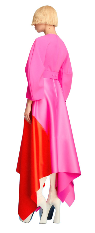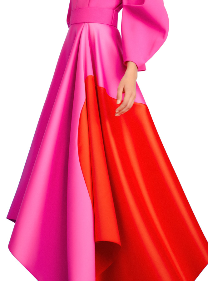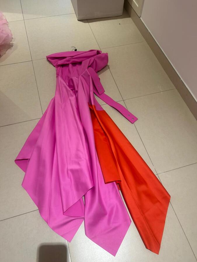 Meet the Quinn Midi Dress in vibrant fuchsia and orange—a perfect day-to-night style! Featuring striking sculptural sleeves and a chic handkerchief hemline, this dress effortlessly transitions from brunch to evening events. Embrace bold colors and unique design with this standout piece that’s sure to turn heads!