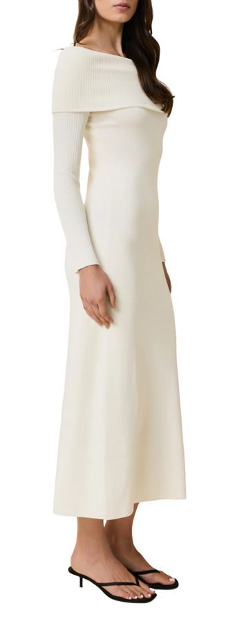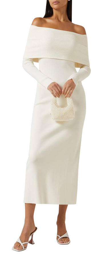 Embrace sultry sophistication with the Sabrina Dress! This off-the-shoulder design features a curve-skimming fit that enhances your silhouette, making it perfect for sweater dress season. The long sleeves provide added warmth, while the pullover style offers convenience. Finished with ribbed knit detailing at the folded neck and sleeves, this dress is a stylish essential!