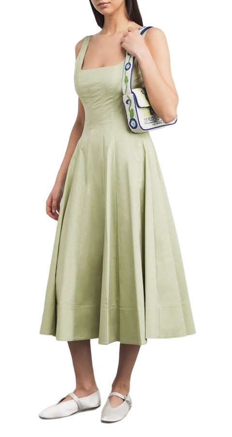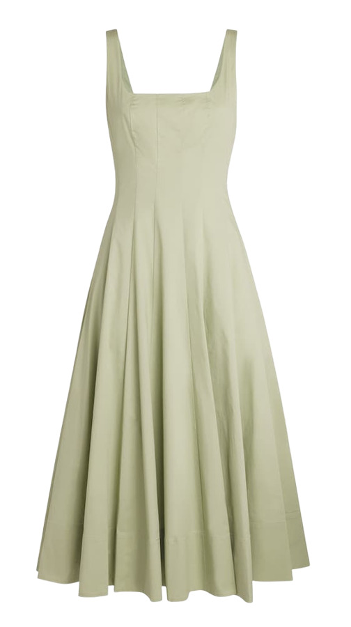 Elevate your wardrobe with the STAUD Cotton-Blend Wells Midi Dress, where vintage charm meets modern elegance. Crafted from crisp cotton poplin, this latest Wells dress features a fitted, corset-like bodice that beautifully contours your shape, paired with a flared skirt for a classically feminine silhouette. Timeless and chic, it’s a must-have for any style-savvy wardrobe!