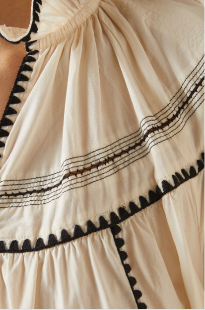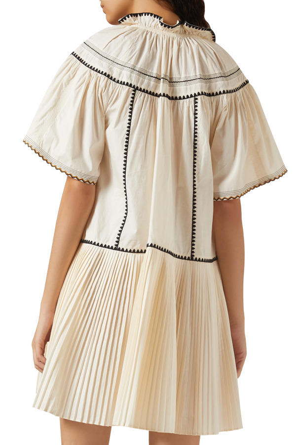 Ulla Johnson's breezy cotton mini dress is just as effortless as it is elegant. Scalloped embroidery structures the design's split-neck, wide-sleeved bodice, falling to a delicately pleated skirt that stays true to the dress' relaxed fit.