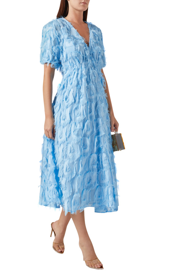 YAS pairs a classic feminine silhouette with creative embellishments for this season's Yaspazylla V-neck dress. Timeless A-line tailoring makes this midi-length style particularly flattering, while 3D frayed embroidery layers it with unexpected texture.